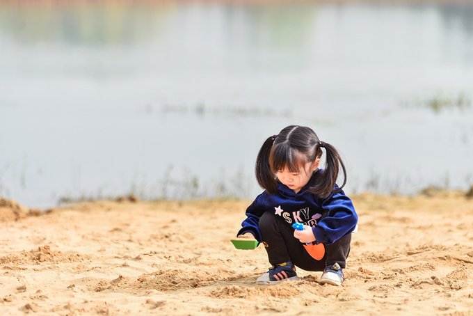 小姑娘正在专心地玩沙