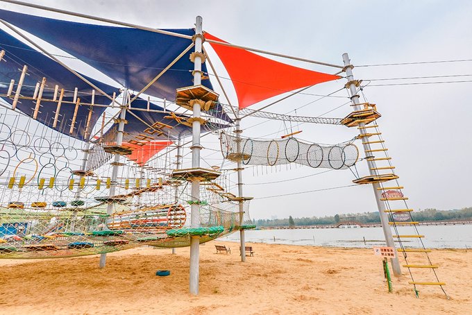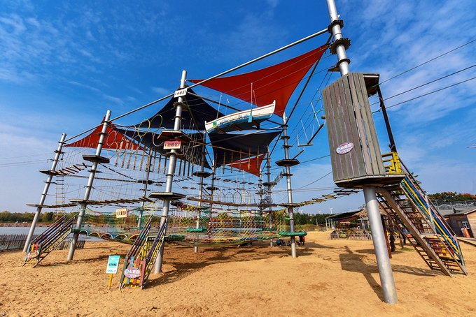 海滩边上有树袋熊探险主题乐园,各式各样的探险项目,可以在这里攀高爬低,还能体验刺激的滑索。