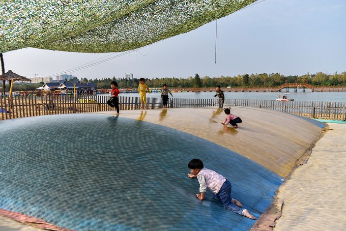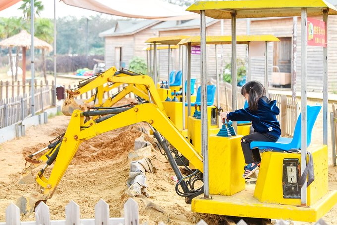 还有适合小孩子玩耍的蹦蹦床和挖土机。