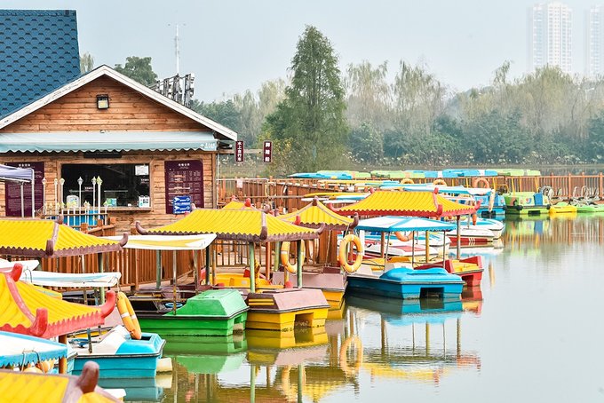 也可划一艘脚踏船,悠闲的荡漾观光。