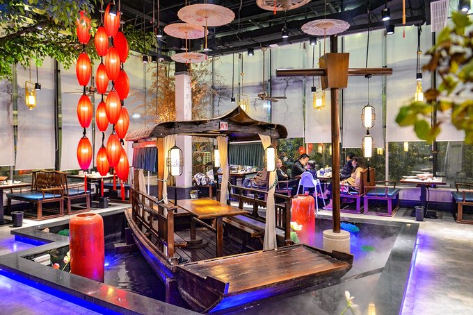 散台里发现了一艘颇带感的小船,船上竟然设了个4人位,可惜我们人多坐不了,叫了个包房。