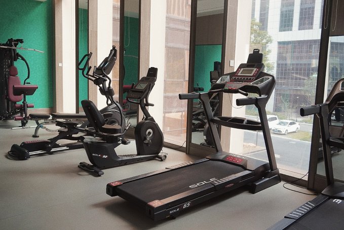 二楼健身房全天24小时开放,对于我这种把健身当做吃饭睡觉一样重要的人来说,健身房在旅途中一定是必不可少的一样东西。跑步机、蝴蝶机、哑铃等器材一应俱全,无论是男生还是女生在这个健身房里都可以挥汗如雨。