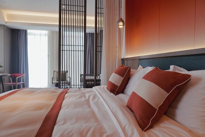 | 客房轻奢设计,细节便利贴心 我的房间在17层,推门而入,装修还是美豪一贯的简单大气又不失时尚。房间的是轻奢风格,区别于一般沉闷、无趣的传统酒店,酒店的房间看起来精巧大方。如果你足够细心地话,还能发现不少杭州特有的元素,将当地风情和酒店氛围完美融合。