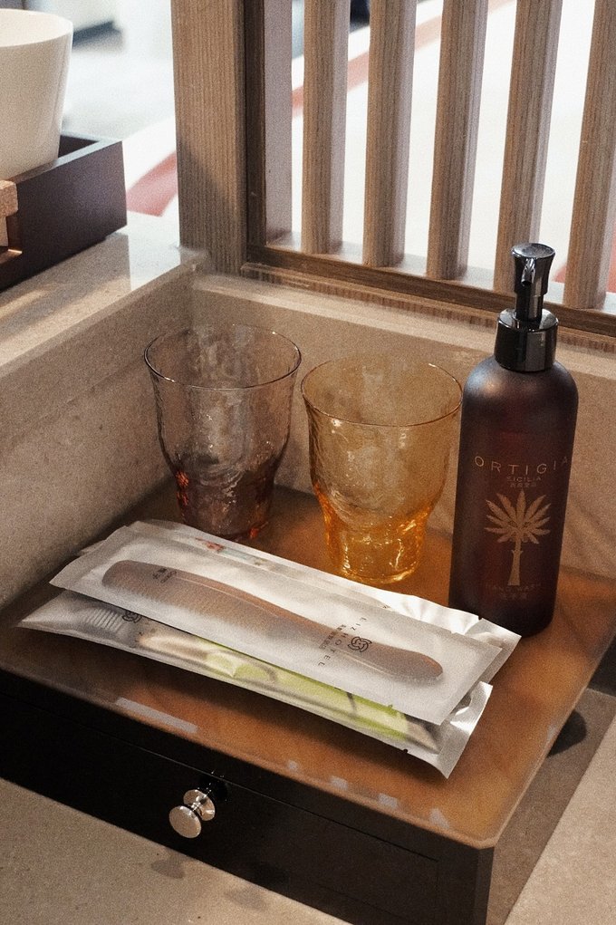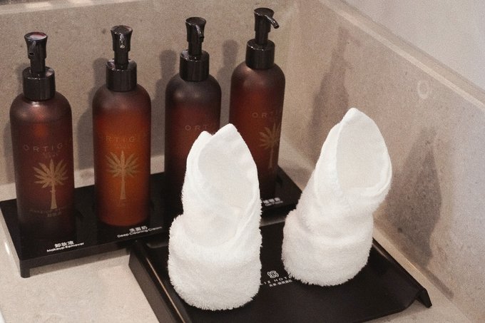 卫生间干湿分离做的很好,淋浴室、马桶和洗手台都被分隔开。酒店的细节也体现在房间每一个角落。房间内提供免费的洗浴用品的同时,还提供免费洗面奶、卸妆液、润肤乳还有发胶等整套的洗护用品。如果是男士的话,什么东西都不用带就可以入住了。