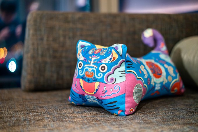 在沙发上放置了一个极有童趣味道的虎头枕,不仅在典雅的房间内增添了一抹色彩。同时它代表着中国的传统文化,起到中西合璧画龙点睛之妙。