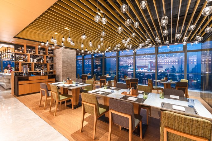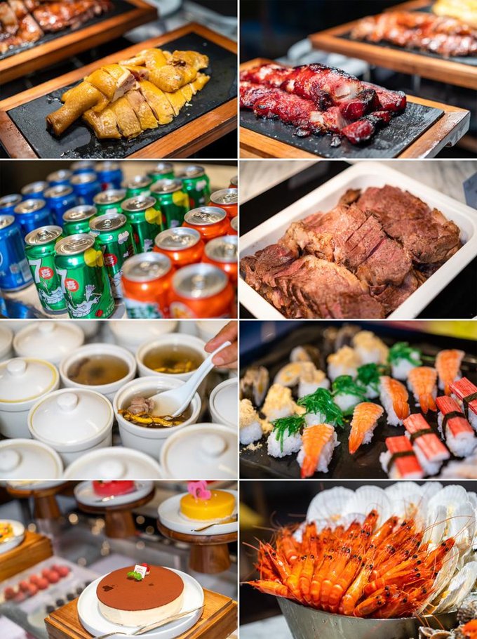 同样坐落于57层的“燃”全日餐厅,早中晚都为客人提供丰盛多样自助餐,除了传统的粤菜之外,还包括了西式、日式及其它地方特色菜品,总共划分9个不同类型的美食区域,包罗万有,口味任君选择,满足不同客人口味的需求。而且每周都会更换不同主题的美食,这也是酒店的菜品一直让客人赞不绝口的原因。
