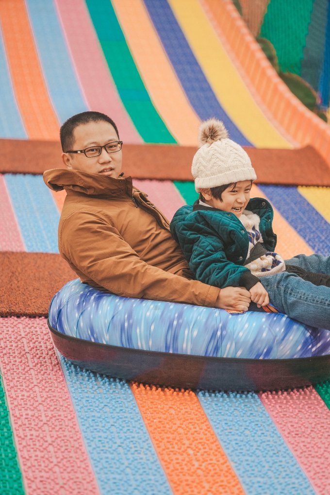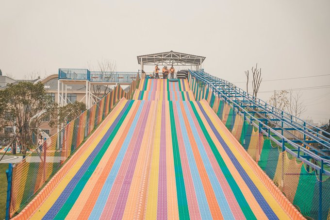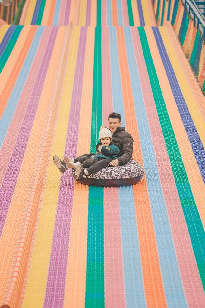 集彩虹滑道和雪圈于一体,可以大人带着小朋友一起玩,既浪漫又刺激。