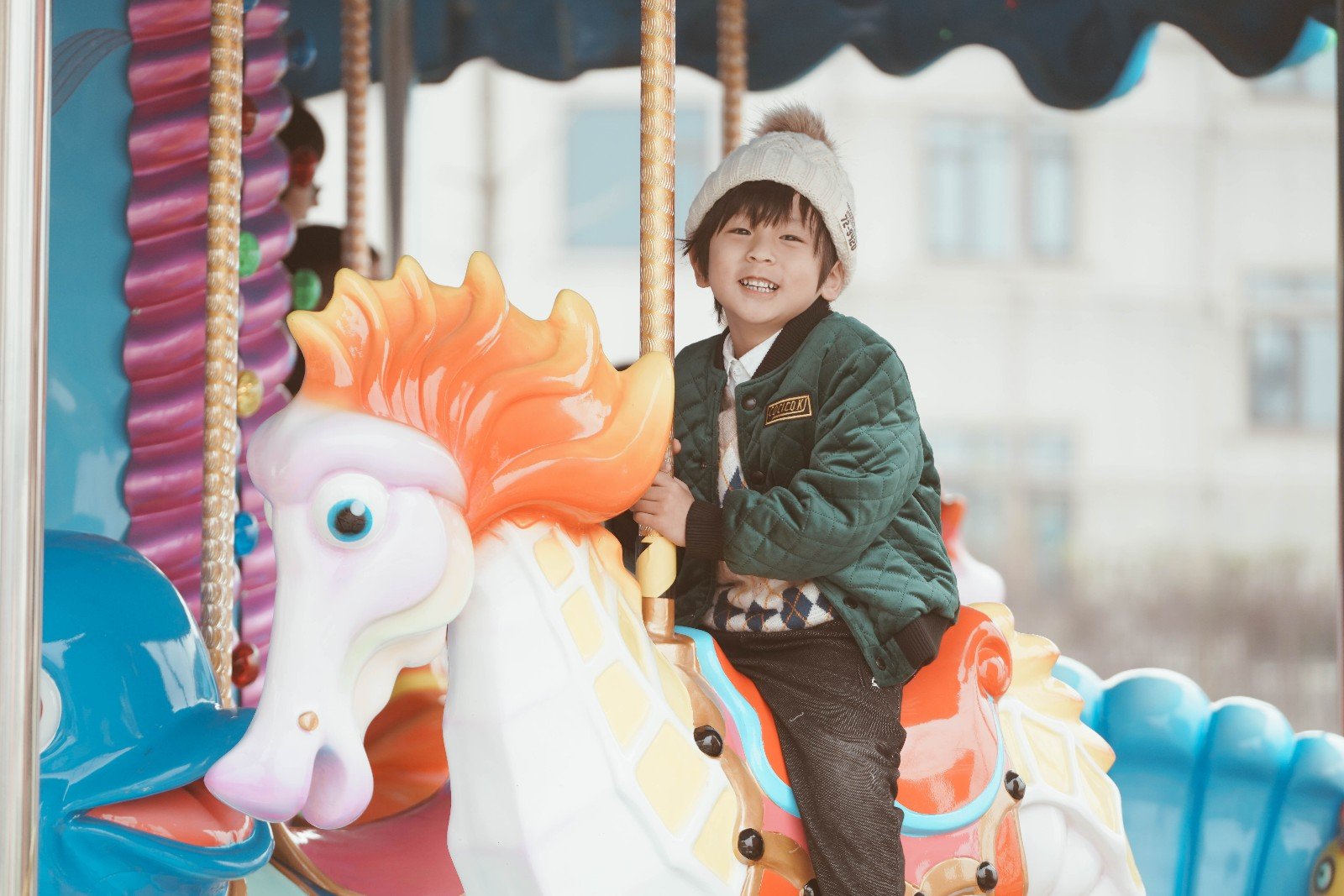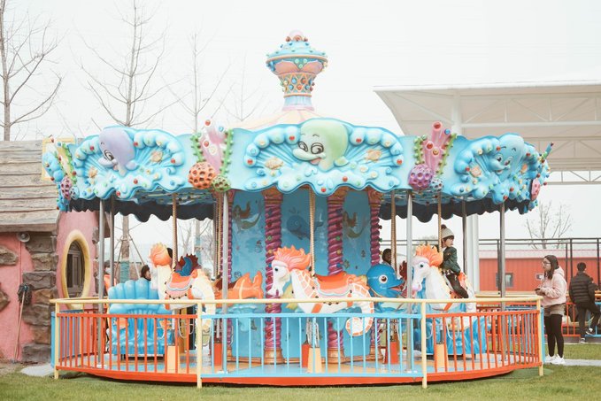 7.旋转海马 刺激指数:★★ 旋转海马是梦幻的海洋版旋转木马,音乐声响起,小朋友们就好像是海底世界的王子与美人鱼。