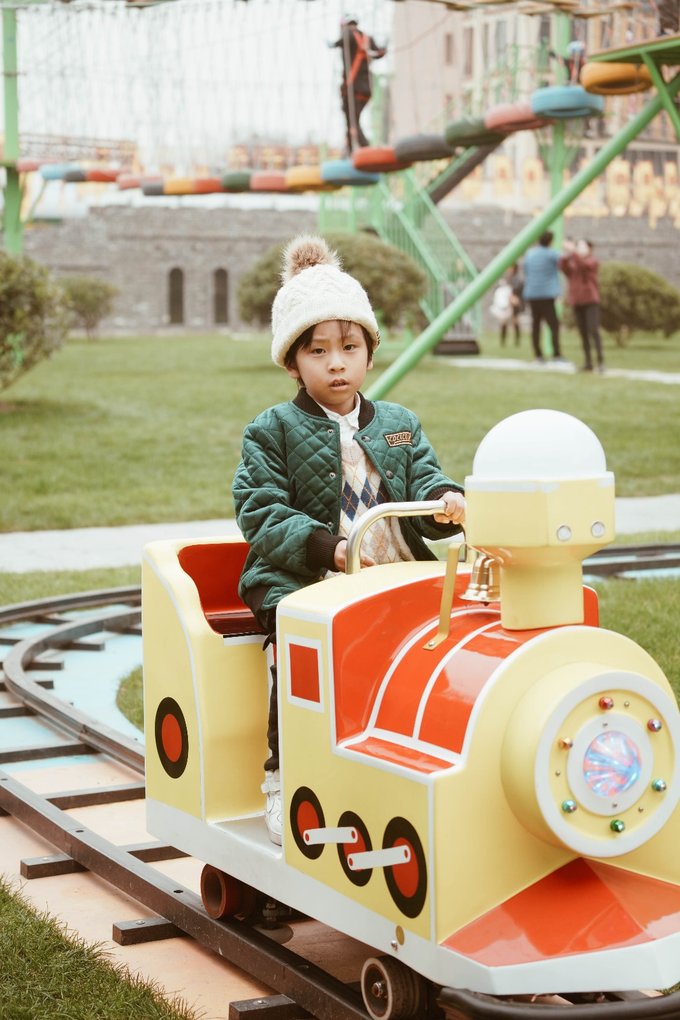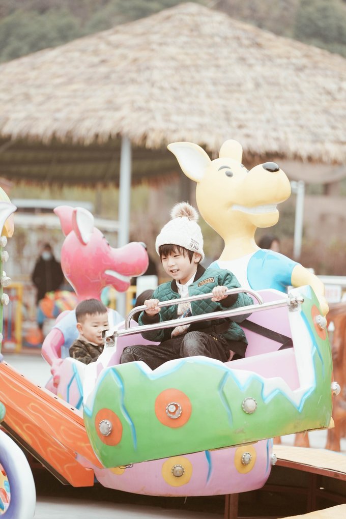 一进乐园就像老鼠掉进米缸的元宝宛如自带充电马达,玩到停不下来,当天玩了彩虹滑道、盘龙柱、挖机能手、田园过山车、跑跑卡丁车、摇头飞椅、旋转海马、嘟嘟车、蹦蹦乐、水上步行球等项目,还捞了鱼骑了马喂了羊驼磨了豆浆,开心的忘乎所以。