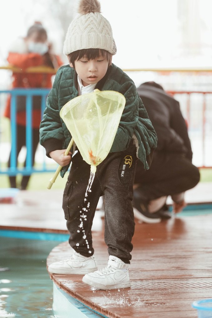 14.捕鱼达人 刺激指数:★★ 萌宝宠物村的对面有个专门供小朋友们体验捞鱼的区域,拿上渔网,小朋友们摩肩擦掌,争当捕鱼达人,元宝最高的战绩是一下子捞起了4条,开心的向我炫耀。