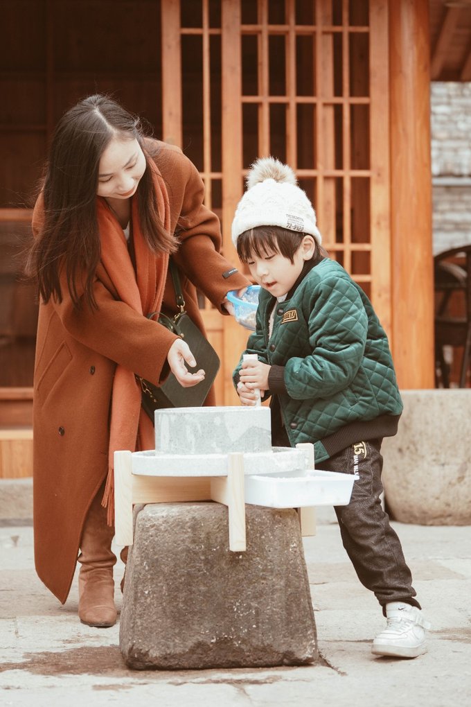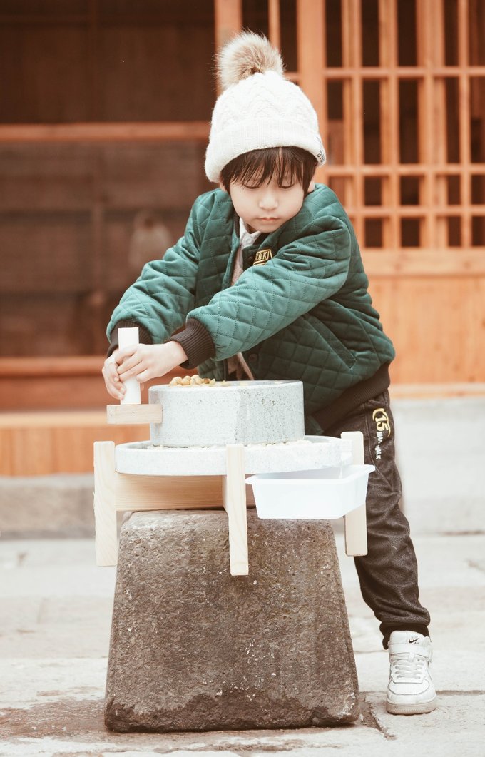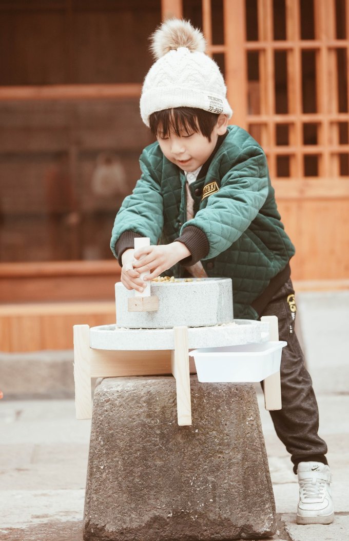 15.磨豆浆 刺激指数:★ 凤煌乐园入口处的百姓古城石文化园里可以体验手工磨豆浆,是带孩子体验传统文化的好机会,元宝就磨的卖力极了,还拿小刷子细致的把豆渣刷到小篮子里,体验既有趣又有意义。