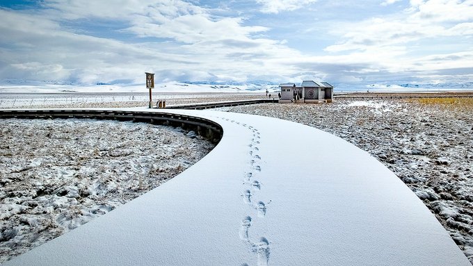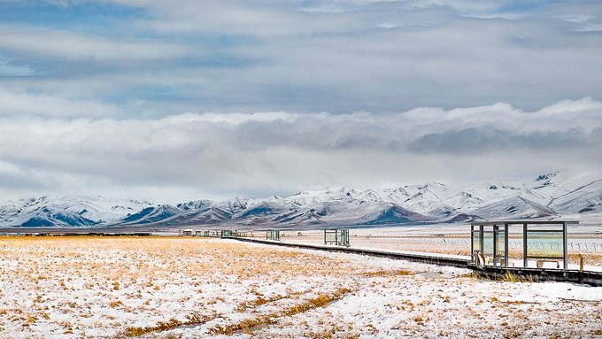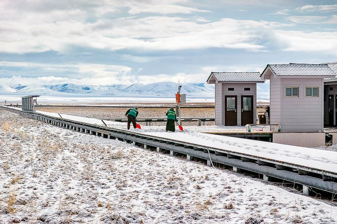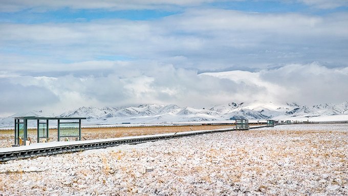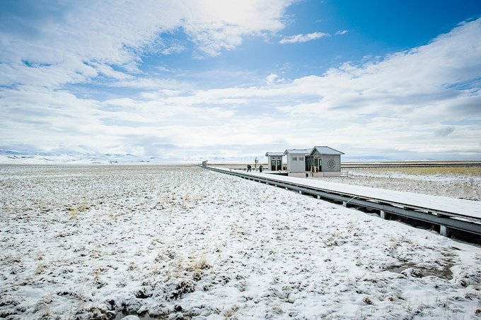 从已是春天的南方城市来到这里,正好赶上了一场不大的雪,看到眼前的银色世界很是震撼。在这个茫茫无边雪景大草原上,它好似一层绵软的垫子铺在草原上,唯美而极具有冲击力,使安静的,洁白的,别样的花湖雪景更加充满魅力。