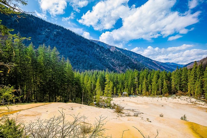 如世外桃源般遗世独立,每走一步,如诗如画的美景都洗涤着向往自由的灵魂。这里较小程度地开发,保留了原有生态。这里人少车少,在四季轮回中绿了又枯,青枯叶茂。辽阔,苍茫,雄浑,视线所及,远接天边。
