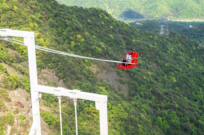 很快我们便到达了“飞天魔毯”的位置,这在早些时间是还没开放的,后来因为发展需求,也为了能够给大家带去更好地体验感,它大大缩短了上山的速度,放眼望去一条长长的“天线”横跨在两山之间,甚是壮观。