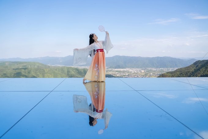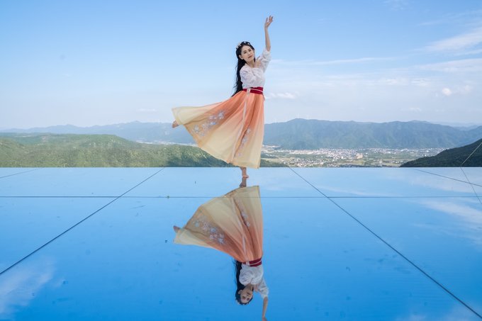 这时候穿上一身华丽的衣裳,站在这镜中,翩翩起舞,倒影出来的便是两个美丽的你。你可以在上面尽情地展现自己,我想每一个行走在这面“镜子”上的人,肯定都愿意取这样一幅景来成为今日最佳的朋友圈。