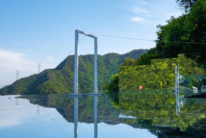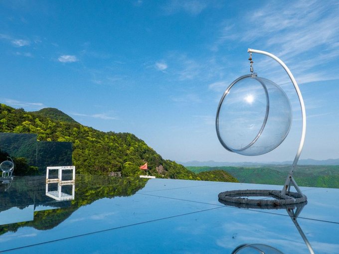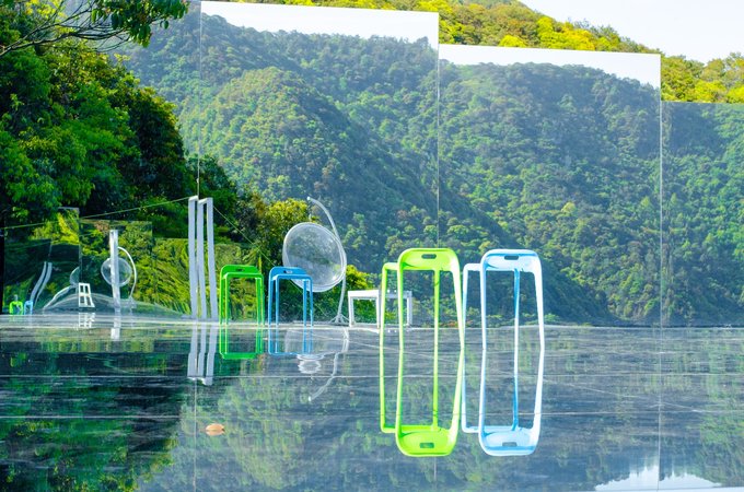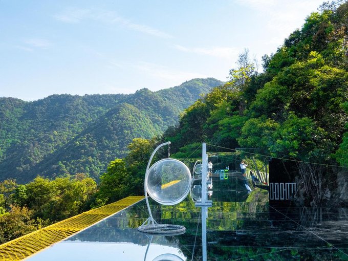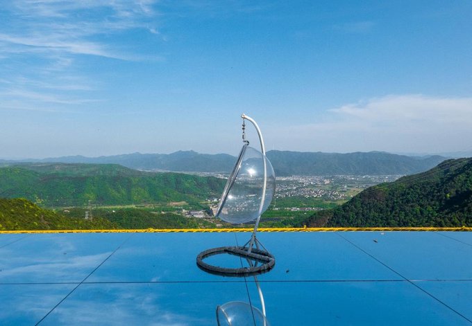 但在我眼前的这“天空之境”其实也不输一二,为了方便上山来的游客可以排上美美的照片不虚此行,它放置了一些拍摄道具,像是玻璃吊椅、各色透明椅子等,都能成为你绝美照片的最好搭档。