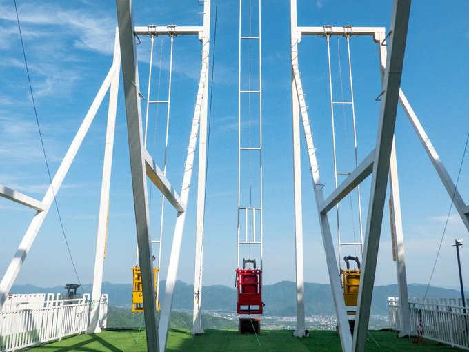 3、高空秋千 其实去了那么多地方,对这个项目的名字已经不那么陌生了,基本上也都大同小异,但是体验真的是第一次。彩色的装饰风格,能给这样惊险刺激的项目带来些欢乐的色彩,也让人的心情不那么紧绷。