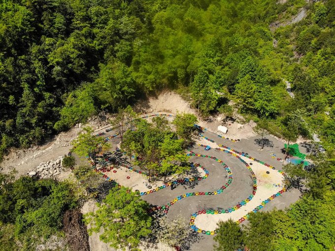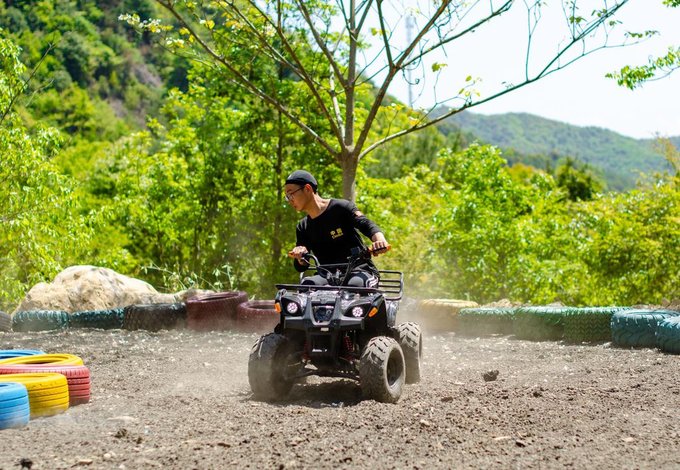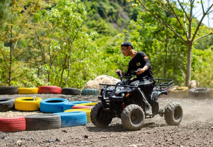 1、山地卡丁车 我们经常能在乐园里或者是一些露天的野营里看到卡丁车这样的项目,但是在梁皇山,它完全是依靠着山水之色来搭建的乐园。