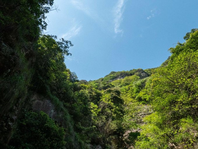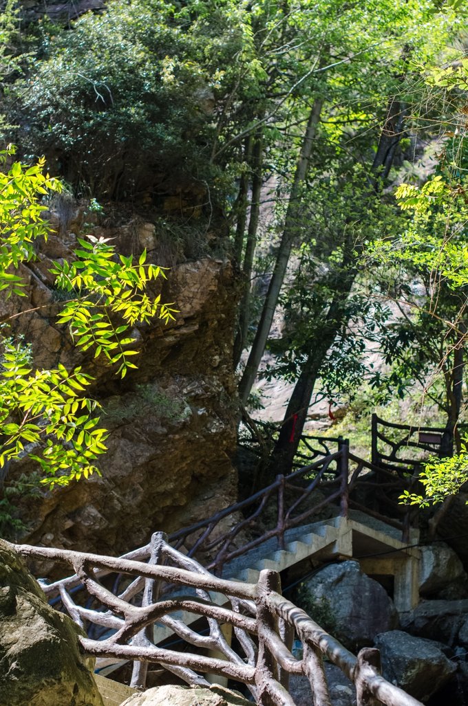 从南线上山,再从北线下山,一路都是岩峰奇特的景象,山色葱郁,清潭飞瀑,谷深涧幽,溪水穿梭于峡谷间,风景旖旎。难怪徐霞客会盛赞此山为 “峰荣水映,木秀石奇”呢!