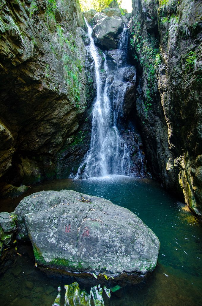 到达地面以后,便还有一段小山路需要走,很快就能看到前方有一刻字“彩石潭”,大小不一的石头堆叠在一起,溪水从他们之中缓缓流过,听景区的人说这儿的山水只要你不嫌弃都是可以饮用的,非常清澈。