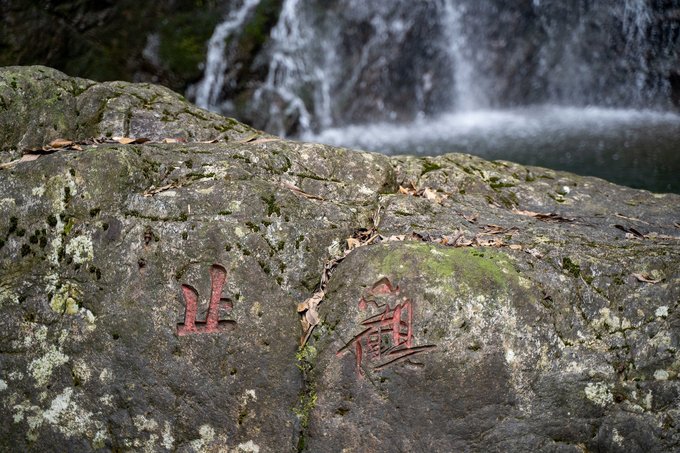 都说这梁皇山的水资源极为丰富,从北线一路上行,数十条大小瀑布从山壁岩崖间飞泻而下,最为气势恢弘的当属“悬空大瀑布”,远远就能望见山巅之上银河飞落,落差高达300多米,可谓山中奇景。而我认为最美的算是“三线瀑”吧,岩石叠嶂,急流无数银花飞散,水珠溅玉,水雾弥漫,一泓碧水清得令人舒心。