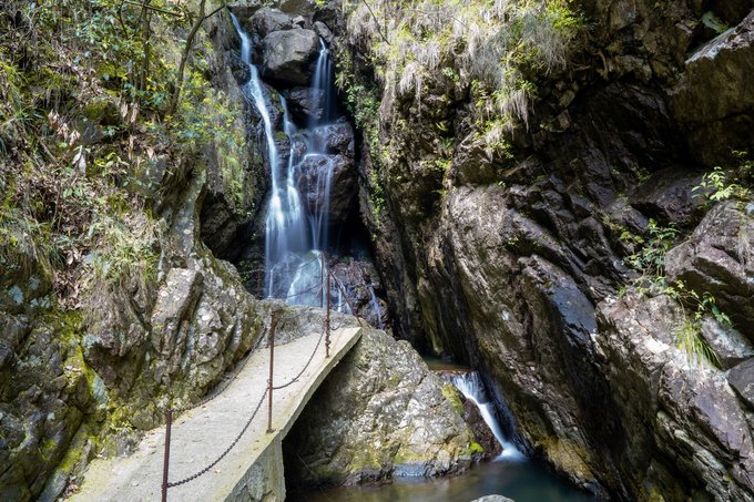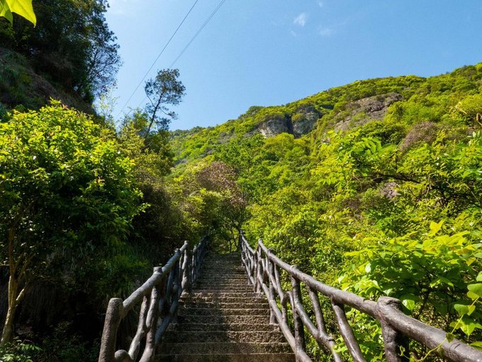 走过这“江南第一石”,便能看到一排由紫藤花缠绕在一起的休憩凉亭,带着阵阵芳香,沁人心脾。再直径往上走,你便能开始听见溪水哗啦的声响。