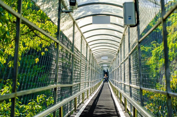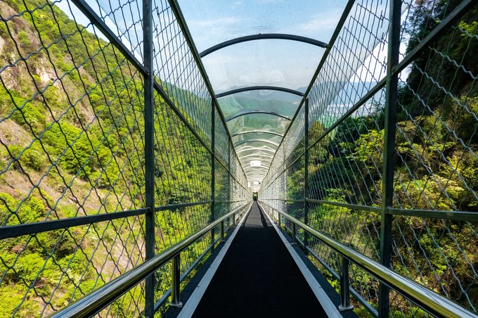 2、玻璃桥 和高空漫步紧连着的便是这玻璃桥了,说起它,大家肯定都一目了然是什么项目。因为在各地大大小小的景区内,只要资源足够可能都会搭建这么一个玻璃桥,他们大多是跨山或者沿着崖壁而建,部分甚至加入5D特效,让玻璃桥更让人畏惧,来让游客亲身体验一番。