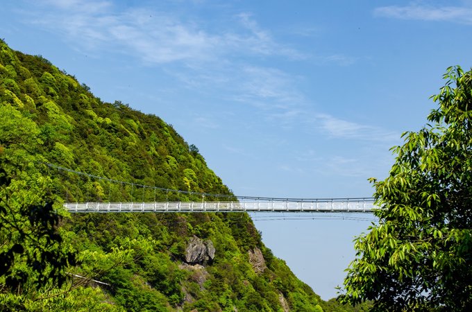 1、高空漫步 在我到达这廊桥的一端时,我便知道这段行走在云端的感觉一定不一般。横跨在两山之间的这条廊桥,脚下便是这梁皇山的全貌,每走一步你都可以清晰可听自己的脚步声和这摇摇晃晃的刺激感。