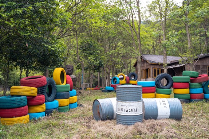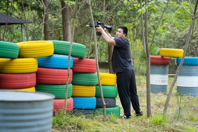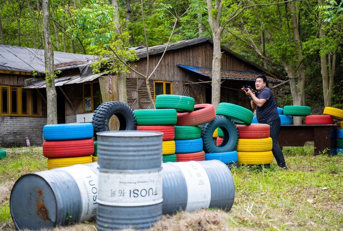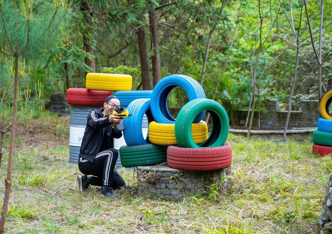 同样还是各色大型轮胎堆砌而成的“桩垒”,还有一些废弃的小木屋,可真算是1:1还原了那屏幕里的样子,除了实战,如果是爱好拍照的你,拿上这仿真水弹枪,倒是也能拍上一组显示你英姿飒爽一面。如果你还沉浸于手游的快乐,不妨就来这体验一把超真实又安全的水枪大战,叫上你的三五好友同行,谁是王者,战场见分晓。