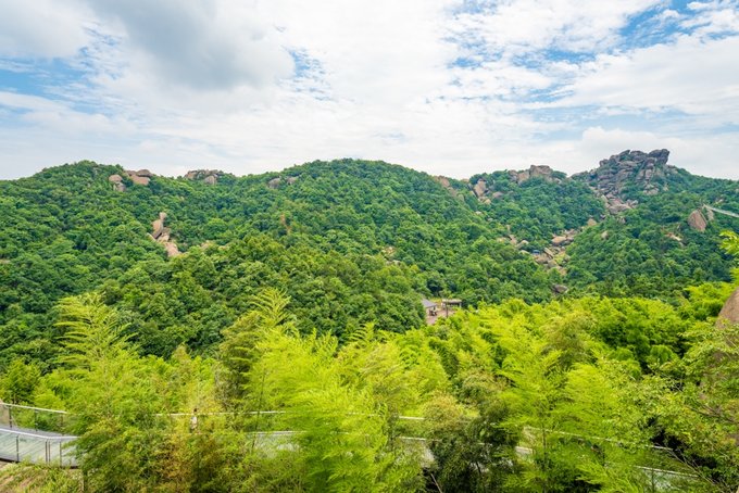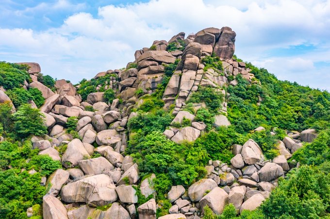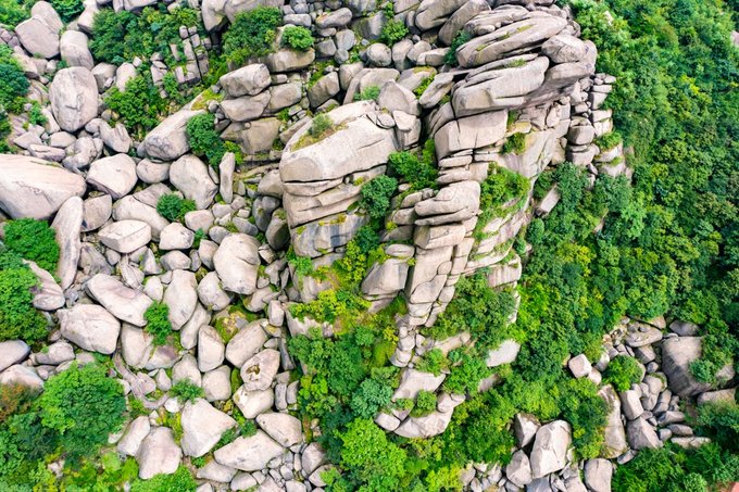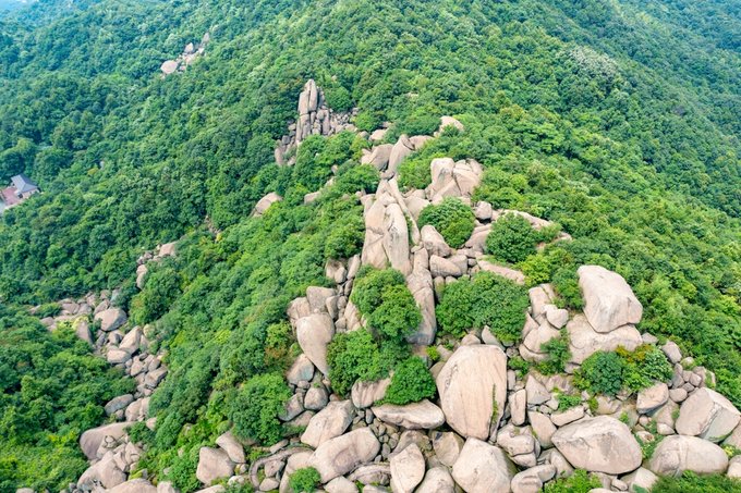 站在巨石山顶放眼望去,花岗岩形成的天然巨石堆砌成一座座山峰,很是壮观。