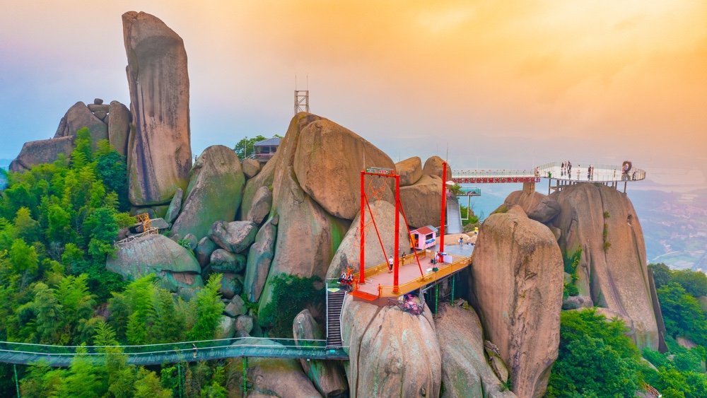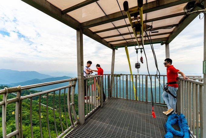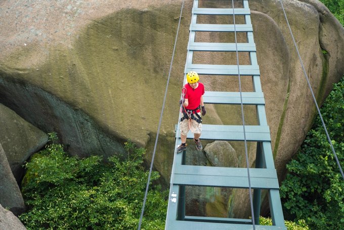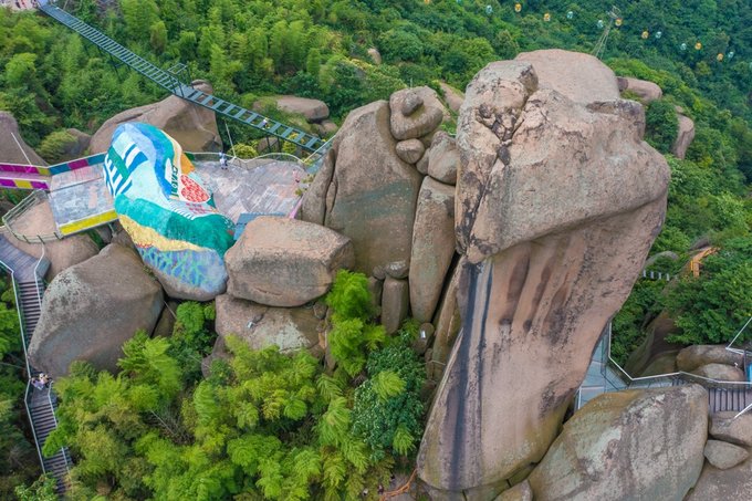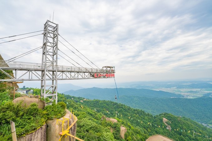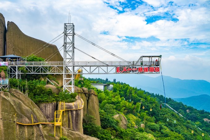 在巨石山除了能感受到大自然的鬼斧神工,还有许多值得挑战的刺激项目,其中最网红的莫过于这处唯一520米高度的悬崖蹦极。