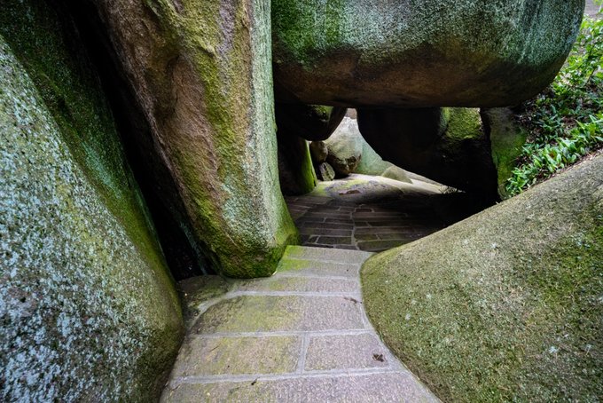 初到巨石山,是一个刚刚经历一场大雨冲洗的下午,下车的一瞬间湿润的空气中夹带着泥土的清香进入鼻腔直冲大脑,在内心深处似乎已经不记得有多久没有过这种感觉。