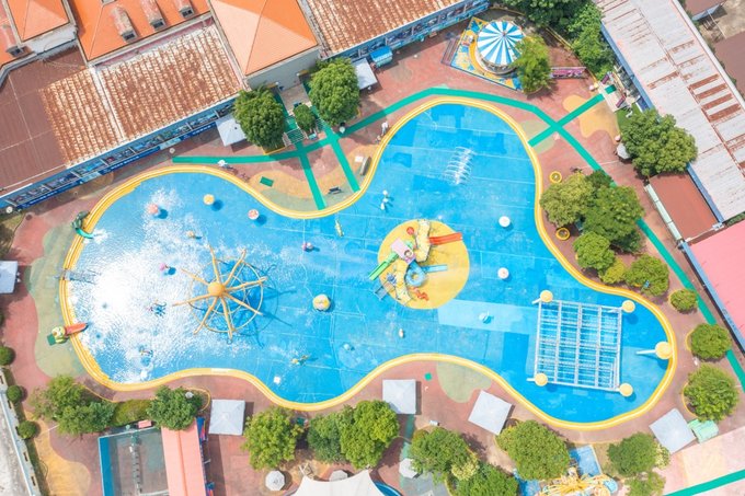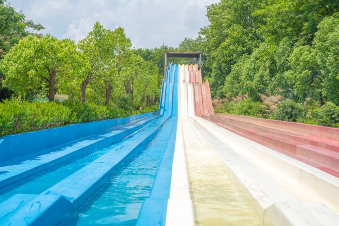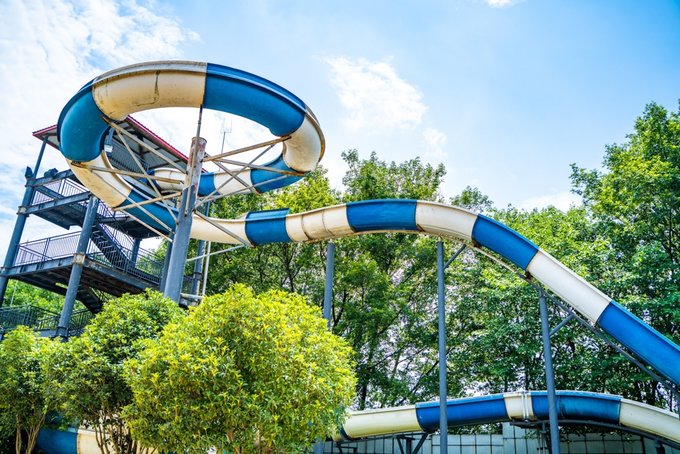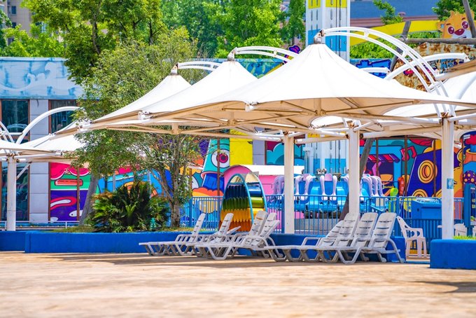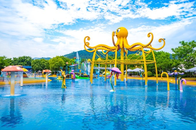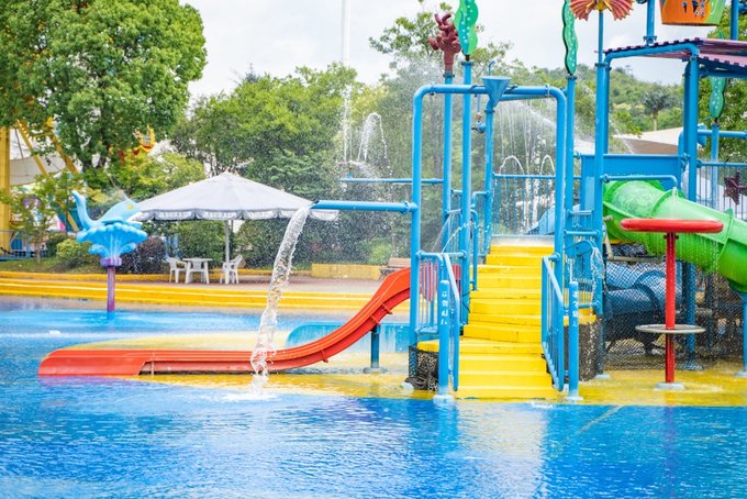 除了这些还有各种形式的高空滑道,在凉爽的水池中也能感受一番刺激。