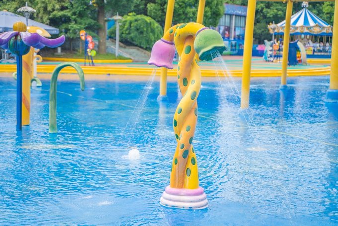 在水上乐园有数不尽的玩水项目,在刚迈进乐园的地方是一儿童的戏水乐园,其中建有喷水飞鱼螃蟹、喷水小丑怪、喷水鲸鱼、喷水蜗牛、雨蘑菇、青蛙滑梯、鳄鱼滑梯等20多套适合小朋友嬉戏的大、小型的水玩具,造型生动可爱。在这里可以与可爱的海洋动物一起嬉水玩乐,仿佛置身于童话般的水世界中。
