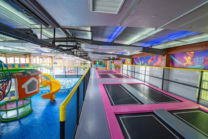 在蹦床馆可以在童心一次感受一把儿时蹦蹦床的乐趣。