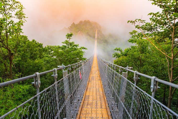 走过过江龙吊桥便能抵达龙头峰,据说这里是观看日出,眺望长江的最佳观赏点。