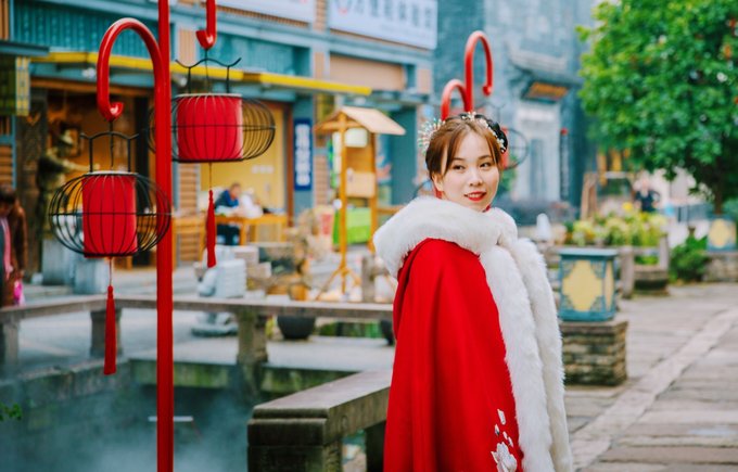 在老街上游走,不一会就能偶遇一枚身着汉服的姑娘,回眸一笑,便甜到了心窝里;