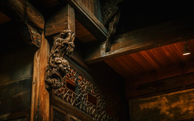 两层宅门一推,就步入了旧日徽州人家。 随处可见精美的徽州三绝(石雕,砖雕和木雕),一幅一画的描绘着花鸟虫鱼,一锤一凿的书写着江南风韵。让人不由自主地爱上这里的老木窗棂,似乎一个转角或一块木雕器皿,每一寸空气或每一个物体都能带你走进古世界的风雨沧桑和诗情画意里~