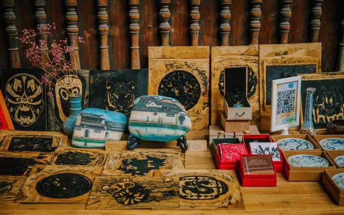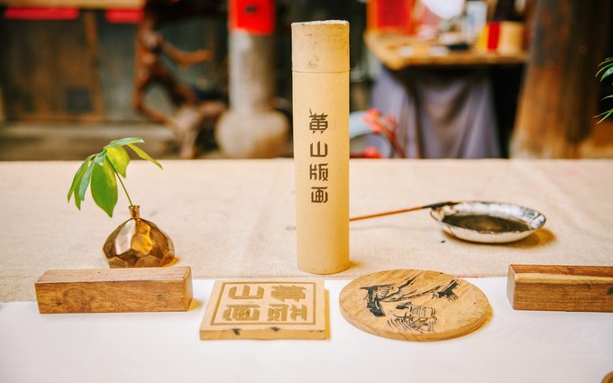 --文化非遗-- 一条看似古朴的黎阳老街,却也是徽州人们匠心的典藏所在…… 老宅改建的游客中心,旁边就有刻录徽州辉煌的版画室,里面各种各样的版画作品新颖独特,富丽精工,传承徽派版画“白描”之特点,游人不仅可以游赏走进生活融入日常的版画艺术,沉浸在匠人画师们塑造的黑白印象版画世界里,还可以参与进去,自己制作一幅幅版画作品,亲自体验一番非遗版画的艺术和魅力;