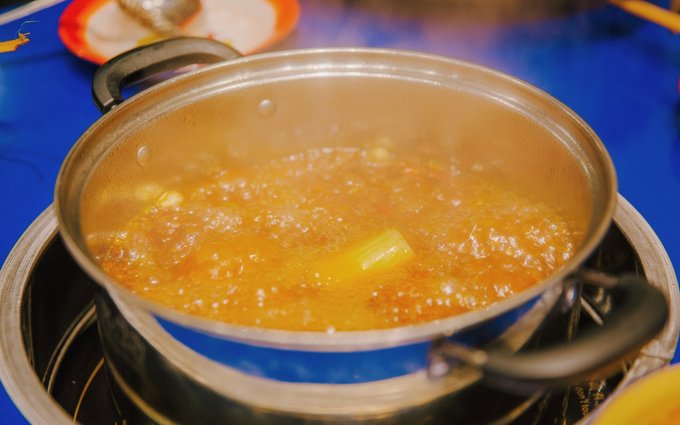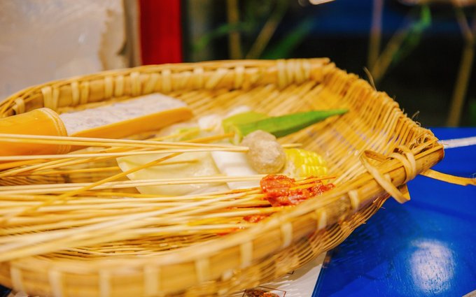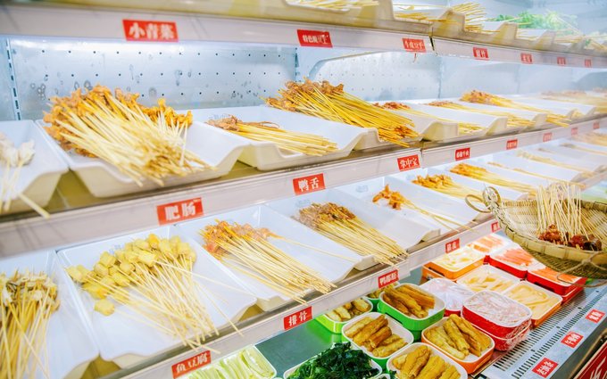 选择了传统锅底,拿了自己喜欢的肉类和蔬菜,接下来就可以开开心心等菜上桌,笋尖牛肉、泡椒牛肉、黑胡椒牛肉……各种牛肉串串,肉眼可见的新鲜!品种多到让人兴奋跳脚。