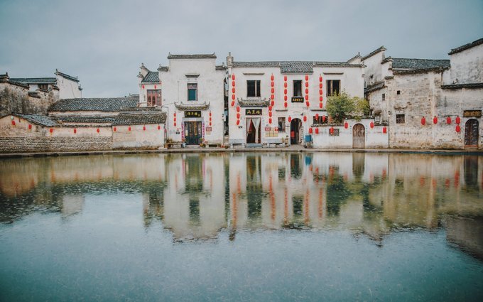 你可以在白墙黑瓦间,感受徽派建筑的韵律之美,黑、白、灰的交错极具中式韵味和设计感;