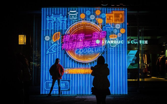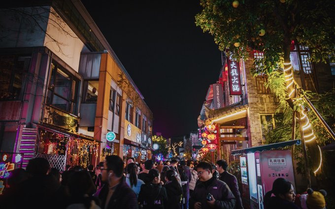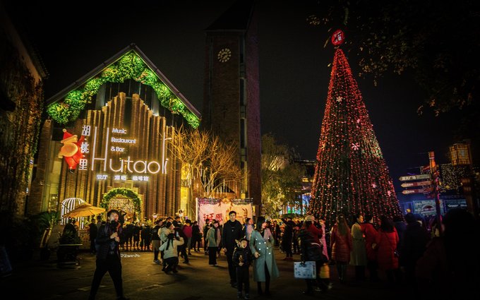 【圣诞巡游,最忆是夜泊黎阳】 巧的是来的当天是圣诞平安夜,夜幕下的黎阳In巷,幻彩迷离,令人陶醉,灯火阑珊中更见璀璨;