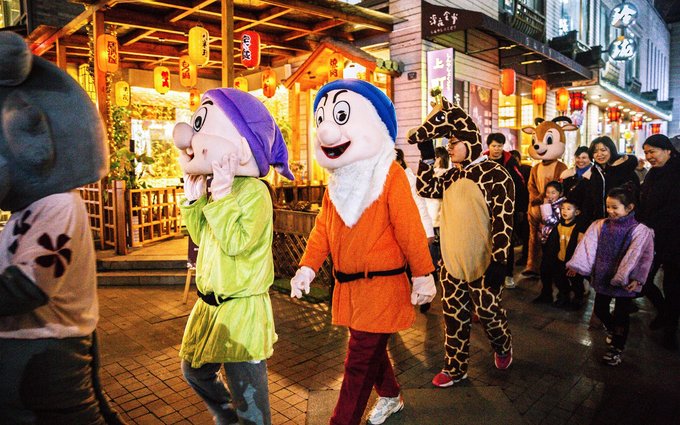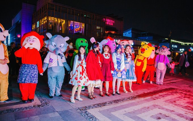 表演结束,还会有各种可爱的卡通人偶,穿着lolita裙的小姐姐们游街穿行,热情的打着招呼,准备随时和你来一场欢乐的偶遇,为黎阳in巷带来一场卡通视觉盛宴!