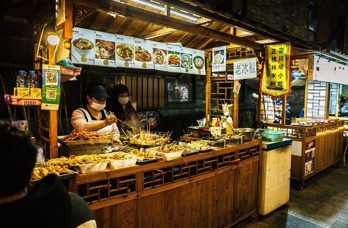 不仅如此,除了热乎的麻辣烫,冒牛肉、冒巴沙鱼,传统成都冰粉、特色小酥肉……不光颜值看着有食欲,吃起来更是大写的赞,在马路边边,你可以一站解锁这里的各种美食~