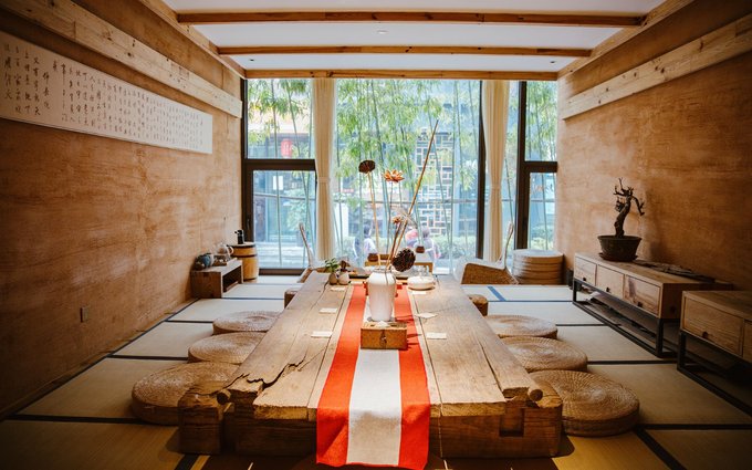 这是一座住的极其自在的徽式客栈,被撕了书皮的破皮书屋,三两藤条椅围坐的茶室,可以看书赏鱼的绿植墙,雅致舒适的客房,无一不被氤氲的笔墨点染, 将一份念温柔的妥帖收藏在清浅时光的杯盏里,写满灵韵与诗意;