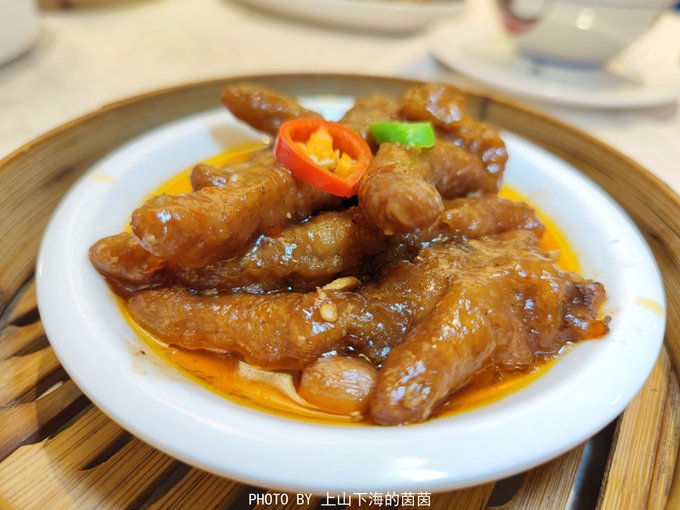 紫金蒸凤爪:这道色香味俱全的凤爪不仅颜值杠杠的,味道更是棒棒。很轻松就可以让鸡爪进行骨肉分离,好吃到骨肉都不想放过!