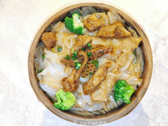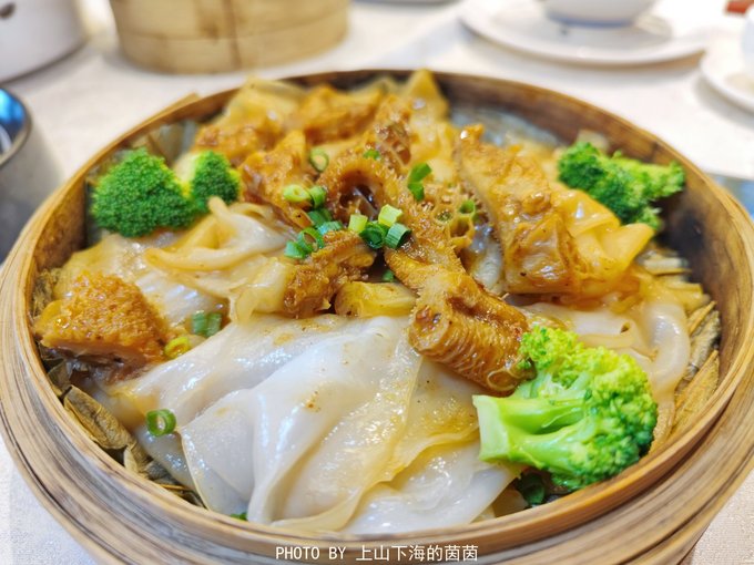 金钱肚蒸陈村粉:一道茶点双份美味!口感酥而不烂的金钱肚很入味,垫在下面的陈村粉薄爽滑软,而且充分吸收了酱汁的精华,我认为可以替代主食!