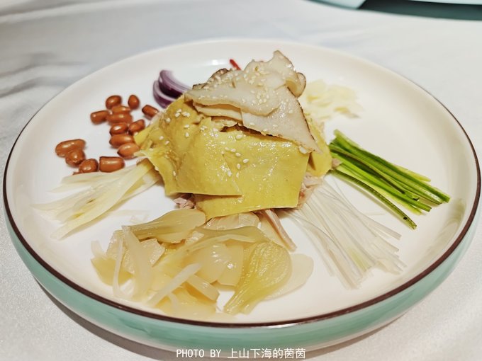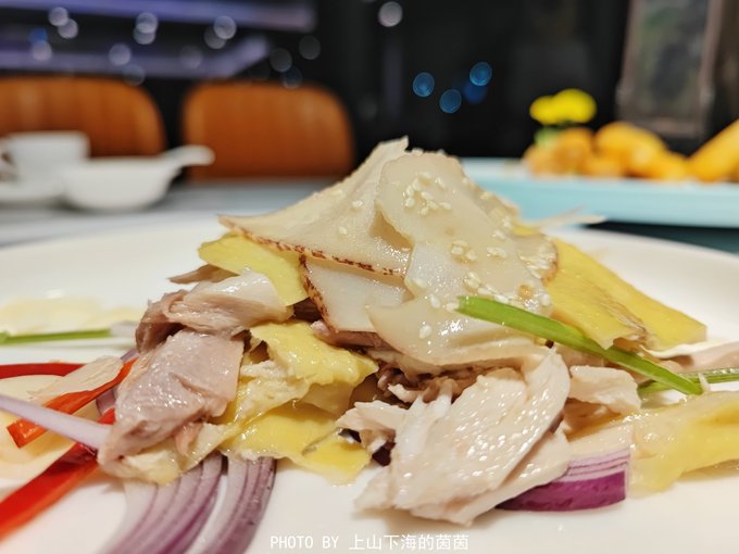 螺片海蜇花捞鸡:每一片鸡肉、螺片、海蜇花都泛着晶莹剔透的光,外围一圈的配菜颜色也很缤纷,这道菜的颜值真的是杠杠的!服务员熟练地将这些新鲜的食材“捞起”,这个过程看着就赏心悦目!鸡皮细滑有弹性、鸡肉嫩而多汁、螺片鲜甜可口、海蜇花爽脆弹牙。