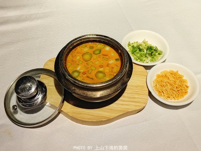 金汤海味泡饭:石锅内盛着的金黄汤底看着有点“相貌平平”,用勺子一捞才知道“大有乾坤”,各种海鲜粒成就了这锅诚意满满的泡饭味道鲜美,一勺送入口中,香脆软糯中还能吃到满嘴的鲜美!