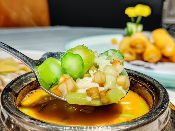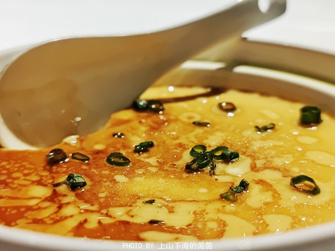 礼云子蒸水蛋:作为舌尖的稀罕物,真身为蟛蜞卵的礼云子的鲜美用词语难以形容。把一勺黄中带红、热乎乎的礼云子送进嘴里,质感幼滑软嫩,尽是沙沙的温柔;味道咸中带甜、细品是延绵浓厚的鲜美。